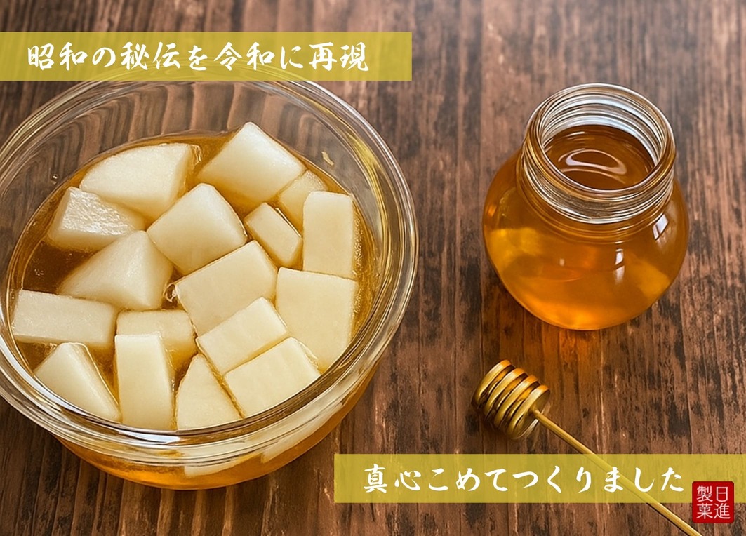 昔から伝わる家庭の知恵をやさしく形にした「はちみつ大根のど飴」。
